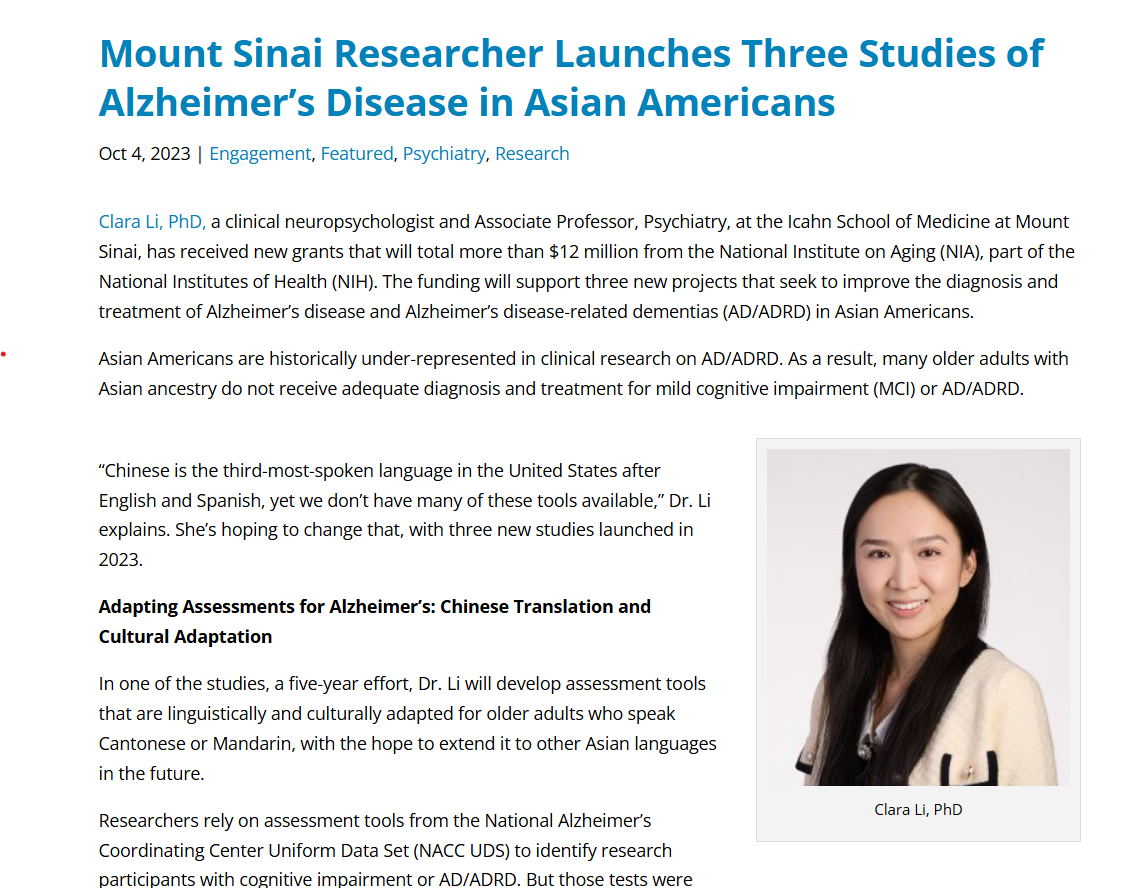 In partnership with CaringKind, the Li Lab hosted a Brain Health Talk & Kite Making event for older adults in the Chinese American community. Over 60 attendees joined the event to learn about brain health and participate in hands-on activities. The event was covered by major Chinese-language media outlets, including World Journal, Sing Tao Daily, China Press, and Epoch Times. Check out the full article here!