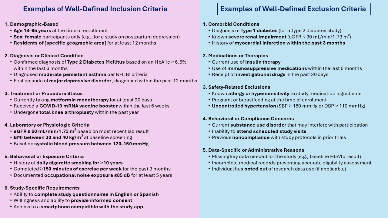 Key to this minimum necessary information requirement is well-defined inclusion / exclusion criteria. Here’s an example of some well-defined criteria: