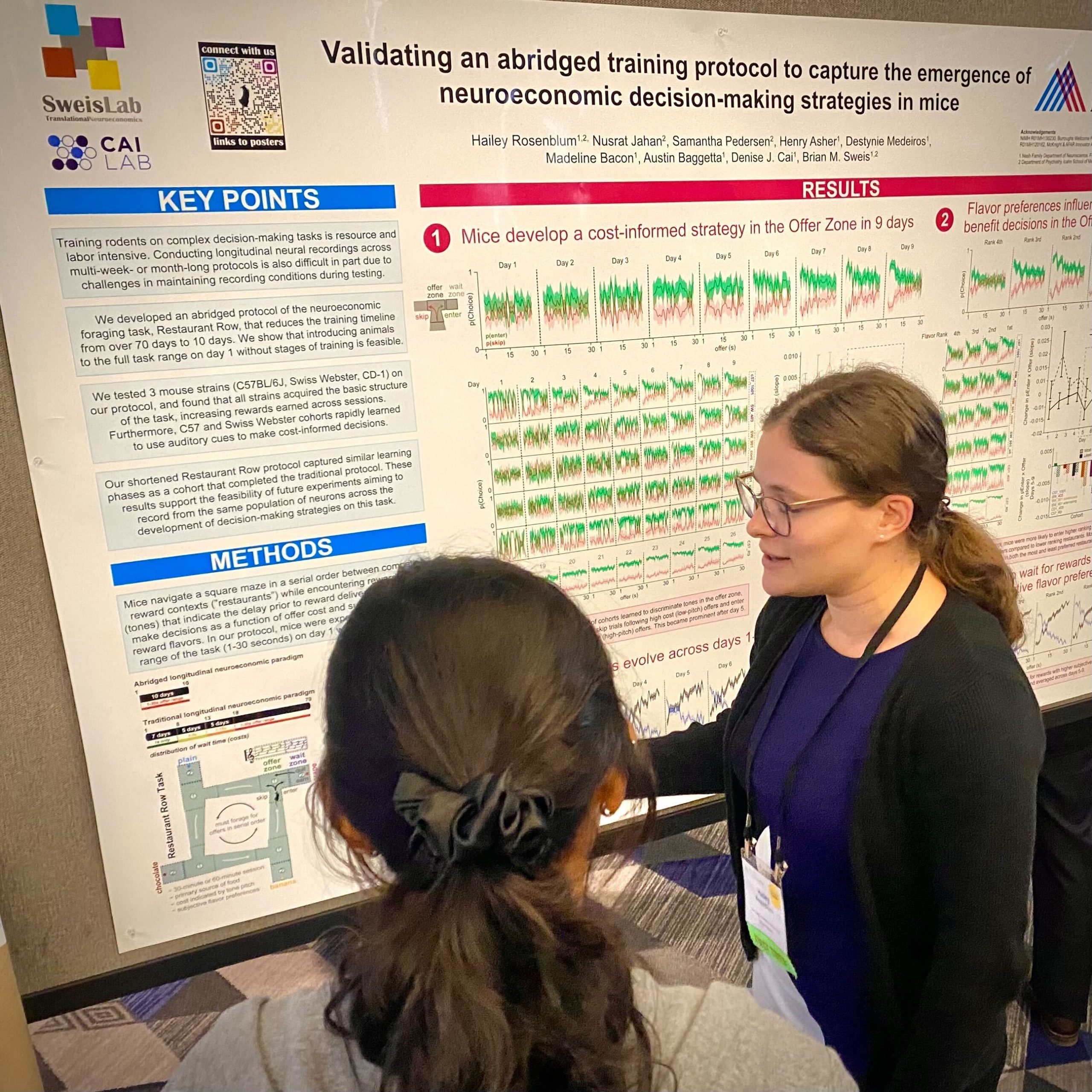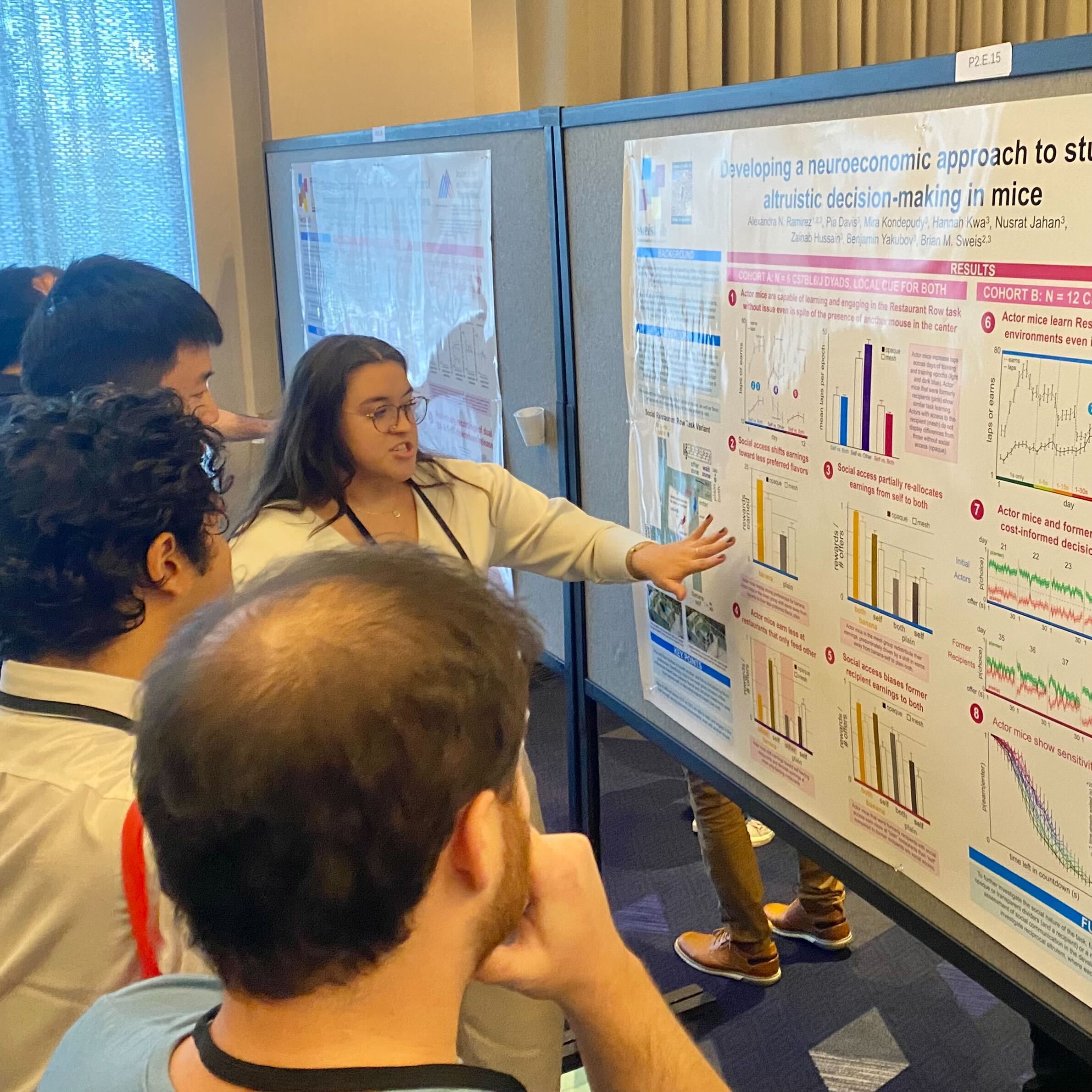 Lab members Emma Andraka, Alex Ramirez, Hailey Rosenblum, and Nusrat Jahan, with collaborator Romain Durand-de Cuttoli from the Russo Lab had a blast sharing 6 posters with the SNE community in Boston, MA!