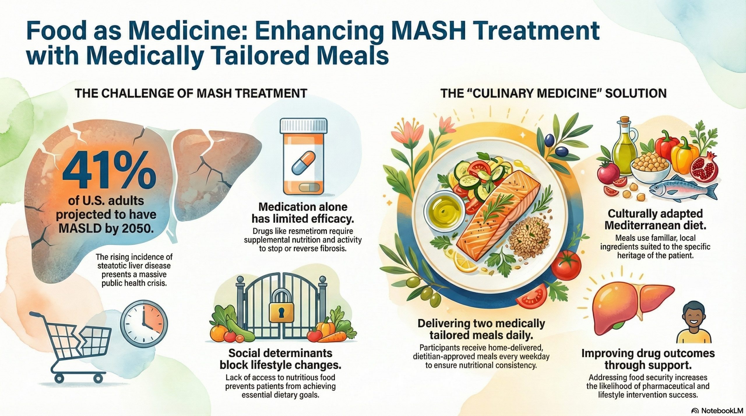 The aim of this trial is to assess the effectiveness of a nutrition-based intervention, including medically tailored meal (MTM) and nutrition education provision combined with resmetirom therapy, compared with resmetirom therapy combined with standard-of-care lifestyle recommendations, in improving health outcomes.
